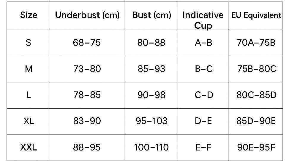 • Sports bras or stretchy styles can fit multiple cup sizes.